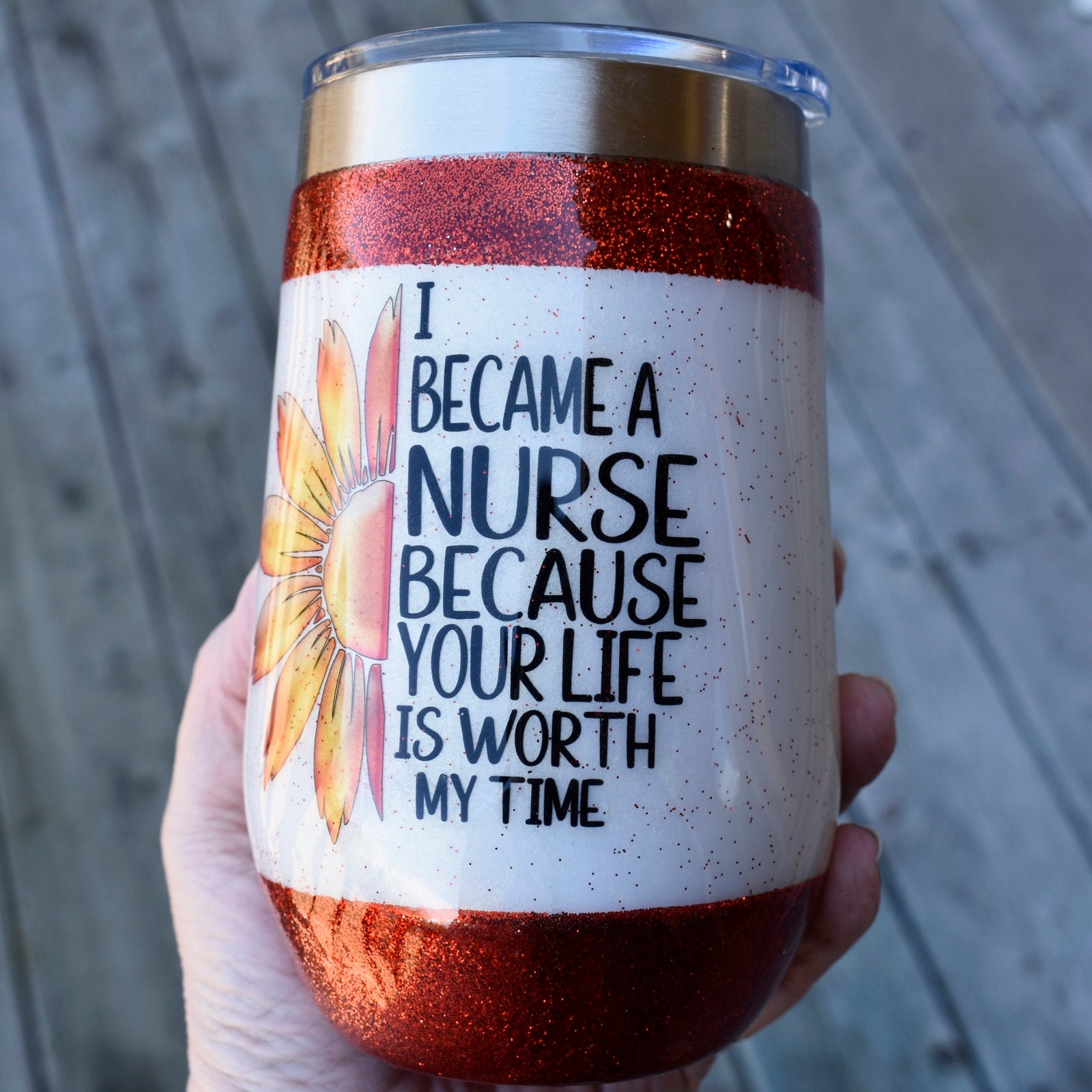 I Became a Nurse Because Your Life is Worth My Time 16 OZ STAINLESS STEEL WINE GLASS *****ONE OF A KIND ART*****